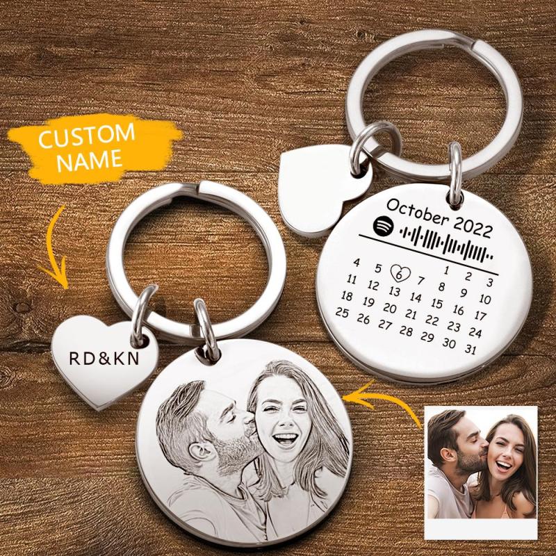 Custom Photo Engraved Calendar Spotify Keychain