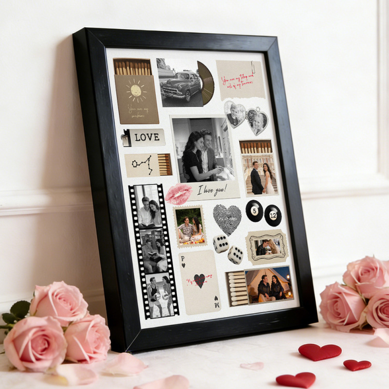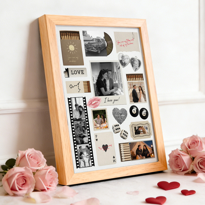 Custom Photo Matchbox Wooden Frame with Your Text Matchbook Art Poster Frame Romantic Couple Gift