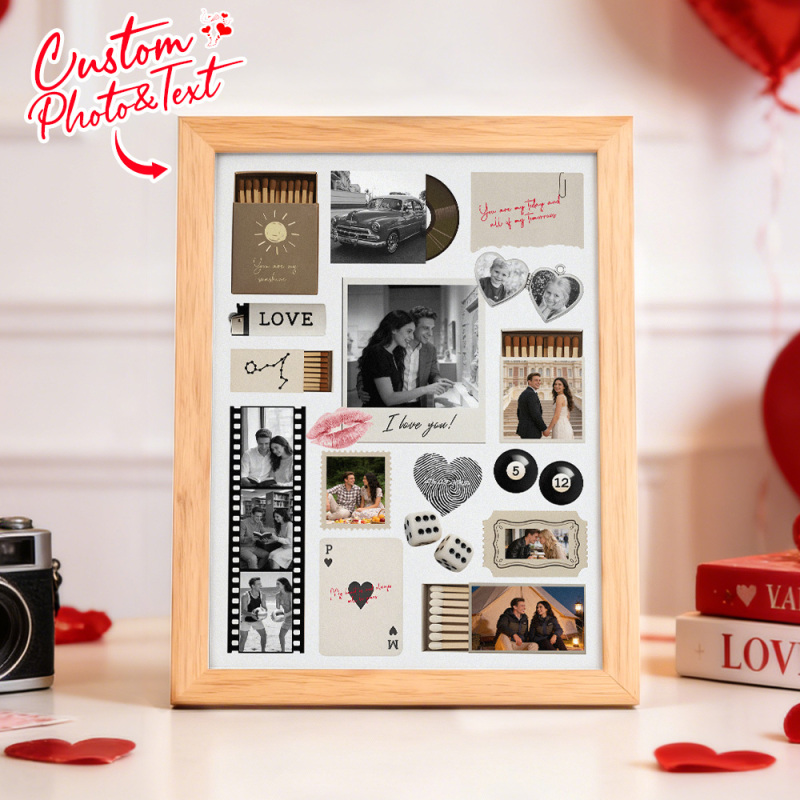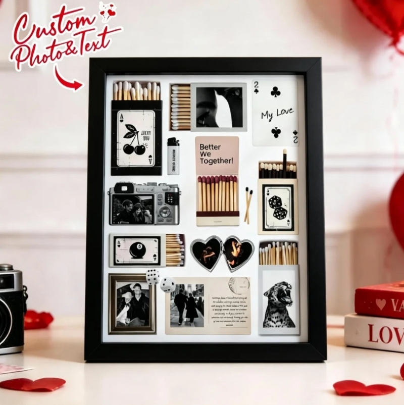 Custom Photo Matchbox Wooden Frame with Your Text Matchbook Poster Print Wall Art Anniversary Gift